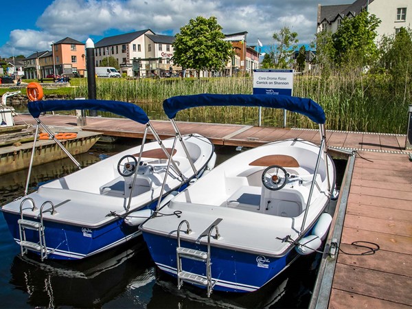 No visit to Carrick-on-Shannon or Leitrim is complete without a trip along the majestic River Shannon. Amongst the many options available to you to do this, is the latest amazing amenity in town and a favourite activity of both our family and friend group guests, – the 100% electric Carrick Day Boats! Turn right when you leave the Carrick Plaza Suites and only one minute's walk towards the Shannon, you'll find the Day Boats behind Moon River Pleasure Cruise at the Quay Wall. Designed to be safe and easy to drive, these boats offer a great way to see the river, the surrounding villages and countryside from a totally different perspective, at your own pace and leisure.